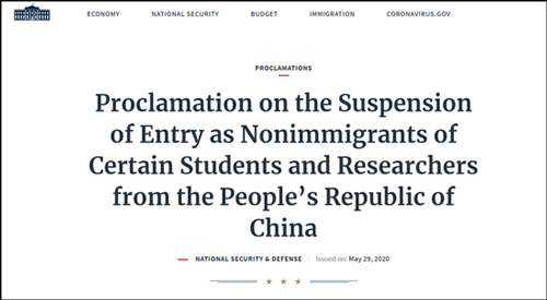 據微信公號“中國駐紐約總領館”6月9日消息,今年2月以來,美國政府先後出台系列針對外國人的入境限制臨時舉措,主要包括:2月2日起暫不允許過去14天曾到過中國的外國人入境美國;3月13日起暫不允許過去14天曾到過歐洲部分國家的外國人入境美國等;5月29日,美國政府宣佈,自6月1日起對部分持F或J簽證的中國留學人員實施入境限制措施。