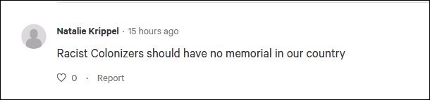 而在紐約市的請願書下方,一名網友也寫道:“在我們國家,種族主義的殖民者本不應該有紀念碑。”