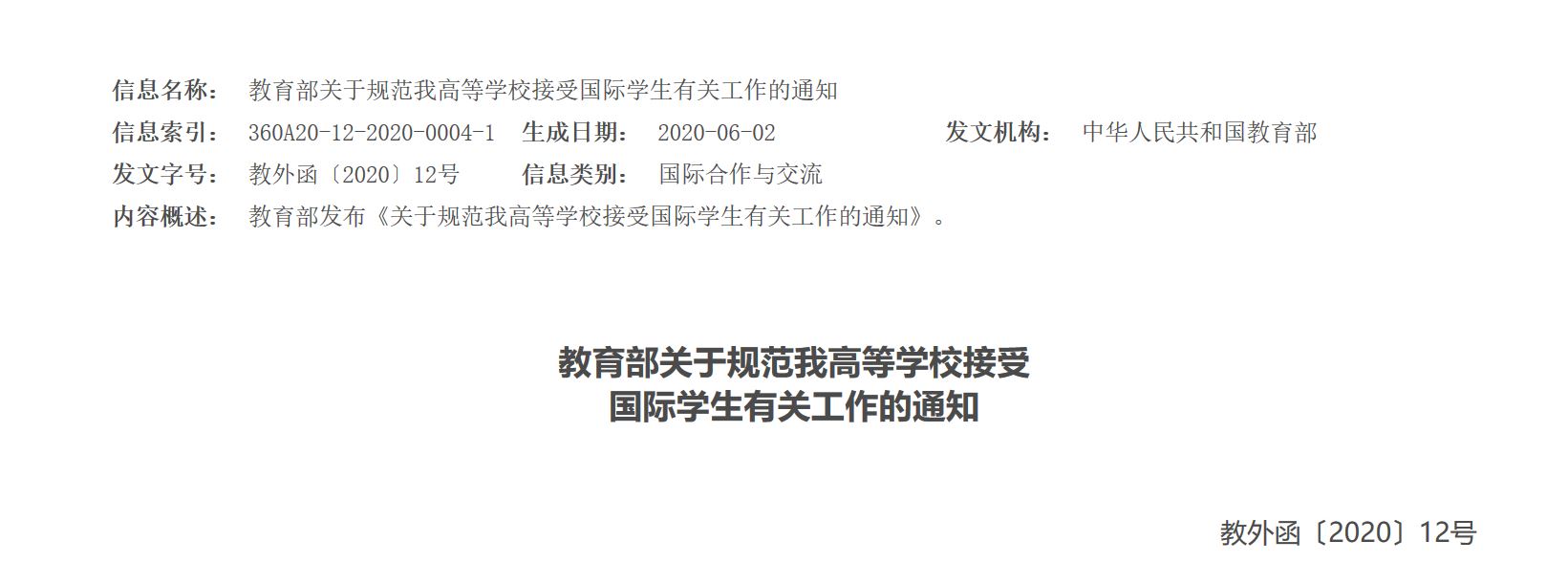 五、本通知自2021年1月1日起施行。2009年11月16日發佈的《教育部關於規範我高等學校接受外國留學生有關工作的通知》(教外來〔2009〕83號)同時廢止。
