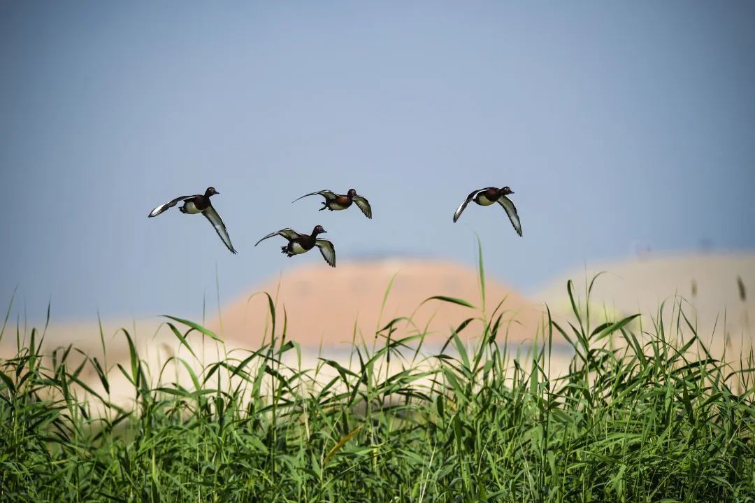 △寧夏石嘴山市平羅縣沙湖景區(新華社記者馮開華 攝)