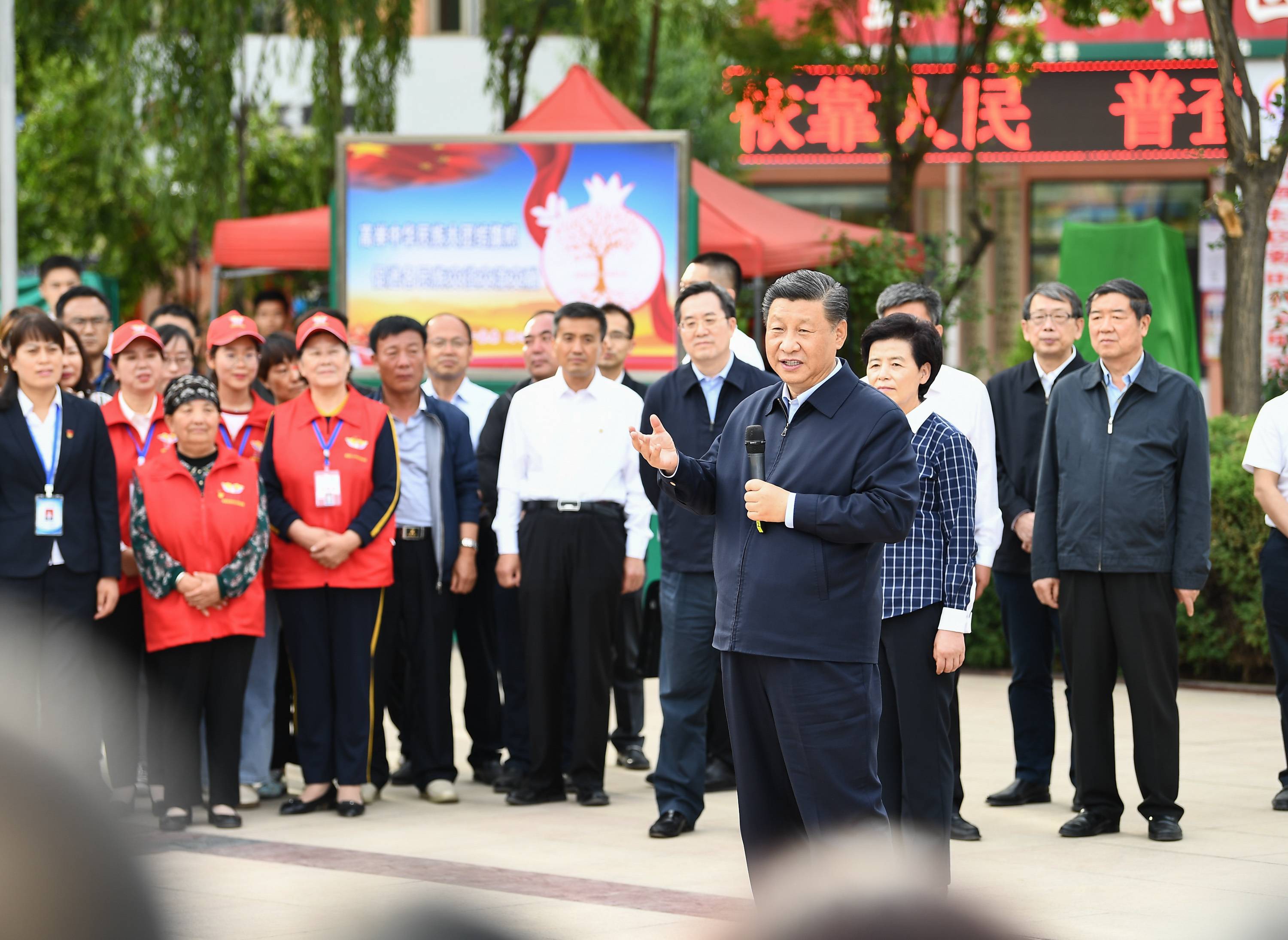 2020年6月8日,中共中央總書記、國家主席、中央軍委主席習近平在寧夏考察調研。這是習近平在吳忠市金星鎮金花園社區瞭解促進民族團結情況。新華社記者 鞠鵬 攝