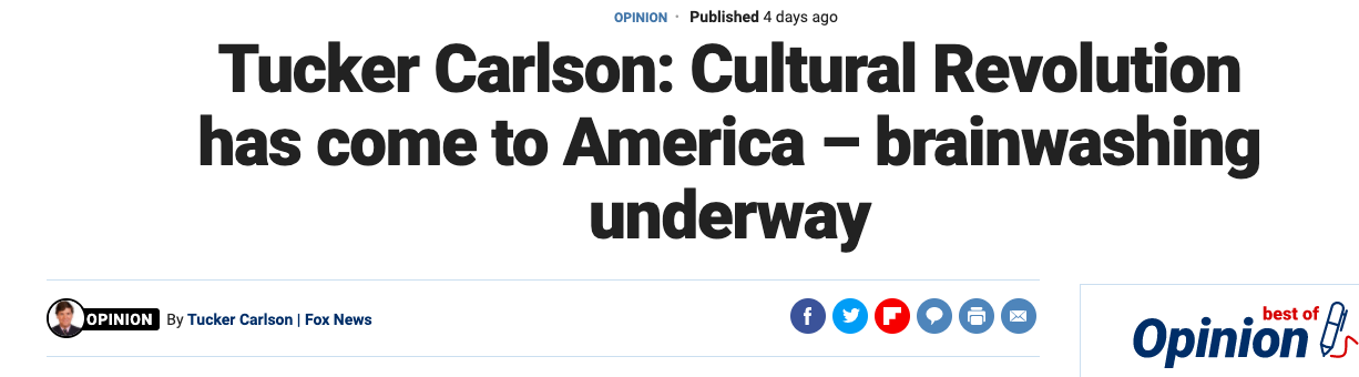 福克斯主播塔克·卡爾森(Tucker Carlson)在6月5日的節目中就直呼,“文化革命已經來到美國,洗腦正在進行”。