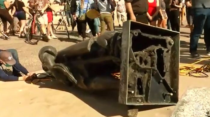 一開始,先是南方邦聯軍雕像被推到。其實類似《亂世佳人》下架,美國民眾以“反歧視”之名摧毀南方邦聯軍雕像**,這幾乎已成為該國種族矛盾激化中的“傳統項目”。**