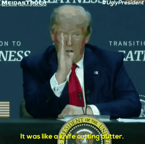 “令我們引以為豪的是,我打了個電話過去,説‘很抱歉,但我們必須得進去了’,然後(國民警衞隊)就開進去了。那場景,就像一把刀切開黃油一樣,嘭。”並比出了一個“一分為二”的手勢。