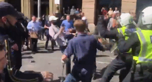 英國警方為了防止抗議活動出現衝突,提前限制了幾個“黑人命也是命”團體的活動。因此這羣右翼的抗議活動最後演變為針對警察的暴力示威。這些極右翼辱罵並襲擊了部署在那裏的保護雕像的倫敦警察。有人向警方投擲瓶子和照明彈。
