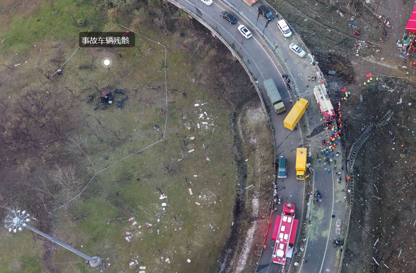 浙江温嶺槽罐車爆炸事故現場全景:罐體炸飛至三百多米外