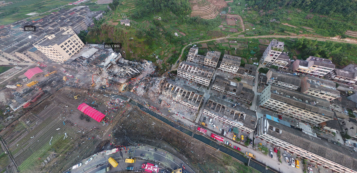 6月14日,浙江自然資源廳、台州市地理信息測繪中心在線發佈了爆炸事故現場全景。