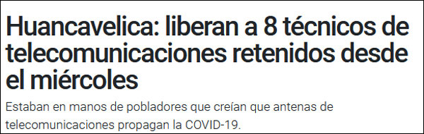 秘魯村民聽信“5G新冠論”,8名技術人員被扣