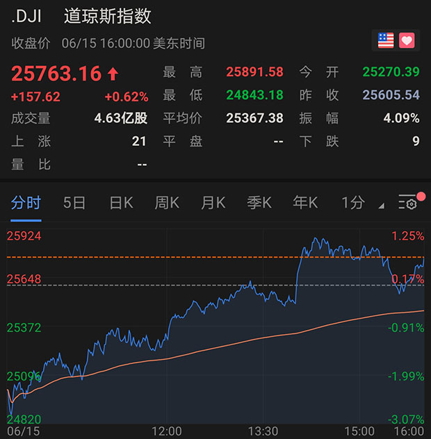由於美聯儲宣佈採取進一步措施來支撐市場,週一美股低開高走,並收復早盤所有跌幅。道瓊斯工業平均指數收盤上漲157.62點,或0.6%,收於25763.16點。標普500指數上漲0.8%,收於3066.59點,納斯達克綜合指數上漲1.4%,至9726.02點。