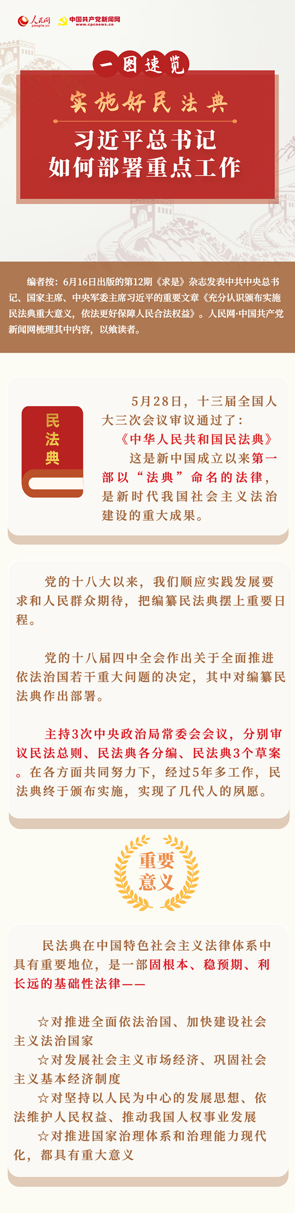 一圖速覽:實施好民法典,習近平總書記如何部署重點工作