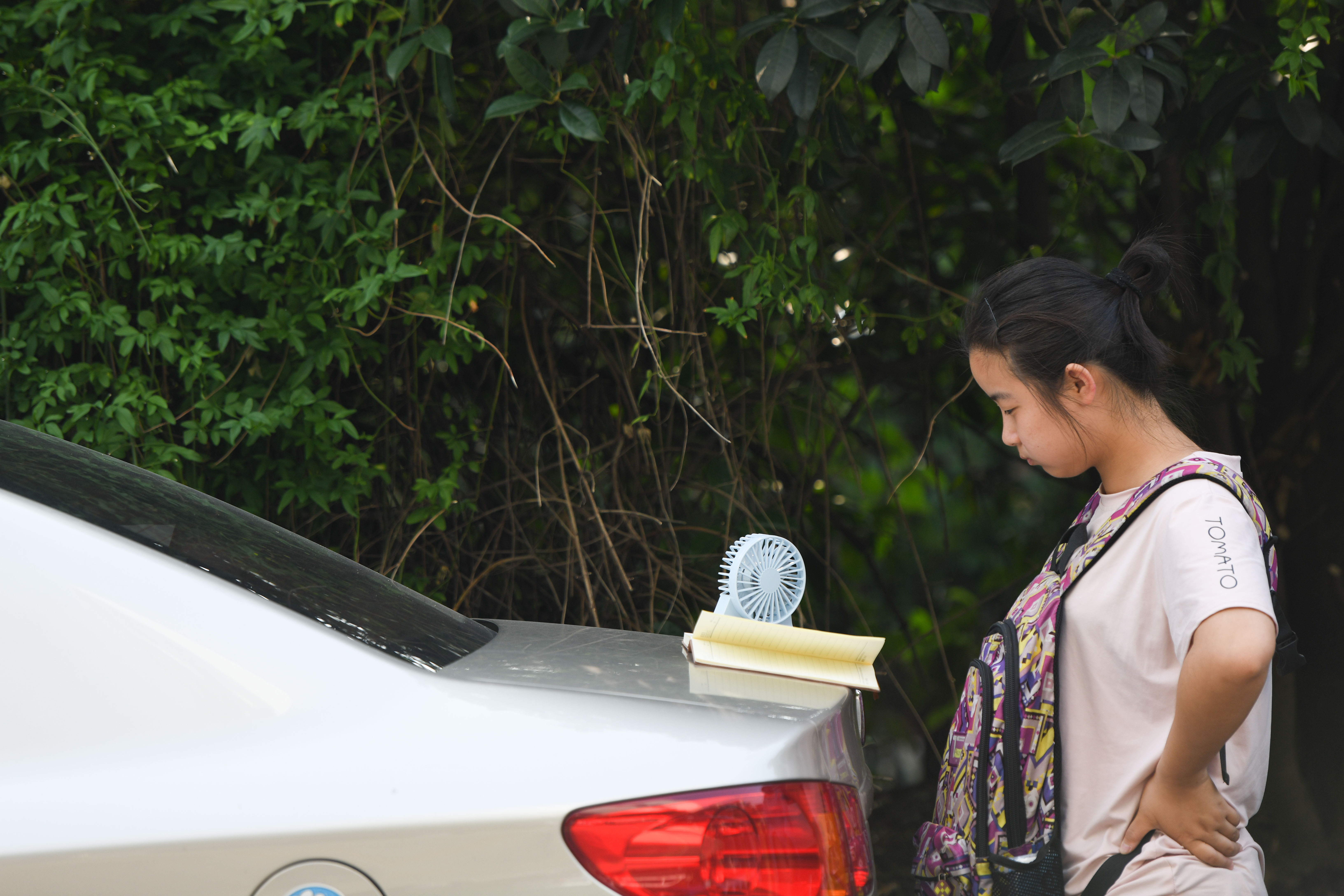 考場外,認真備考的考生 圖自新華社