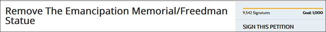 發起者托里·布洛克在請願中寫下了他的理由:“我從小就在觀察這個跪在地上的男子。他本應代表自由,可實際卻代表着我們仍在他人之下。我總是問自己,如果他是自由的,那他為什麼還跪着?將來不應再有孩子這麼問自己了。”