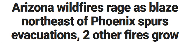 菲尼克斯東北部的火災於6月13日開始,在高温、乾燥、多風的天氣條件下迅速擴散,報道稱起火原因是人為因素,但具體細節仍在調查中。美國交通部已經關閉了附近的兩條公路。
