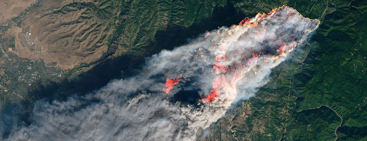 “眼前的世界都在起火”,18年“坎普山火”衞星俯視圖(圖源:NASA)