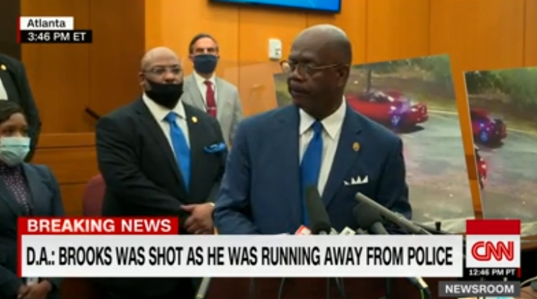 觀察者網此前報道,當地時間6月12日,亞特蘭大警方在執法過程中槍殺27歲非裔男子布魯克斯。快餐店監控錄像顯示,他與警方發生肢體衝突後,奪過一名警察的電擊槍後開始逃跑。