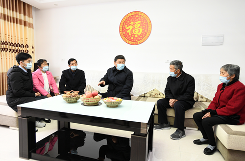 4月21日,習近平在安康市平利縣老縣鎮錦屏社區,同搬遷户汪顯平一家圍坐在一起拉家常。