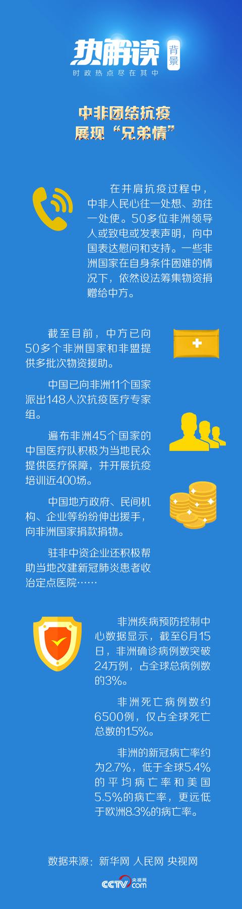 熱解讀 北京時間6月17日晚,一場由中國和非洲聯盟輪值主席國南非、中非合作論壇共同主席國塞內加爾共同發起的中非團結抗疫特別峯會以視頻形式召開,習近平主席主持這次特別峯會,並發表題為《團結抗疫 共克時艱》的主旨講話。