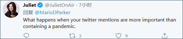 還有網友發出“靈魂拷問”,“當一個總統認為刷推特比控制新冠疫情傳播更重要時,會發生什麼?”