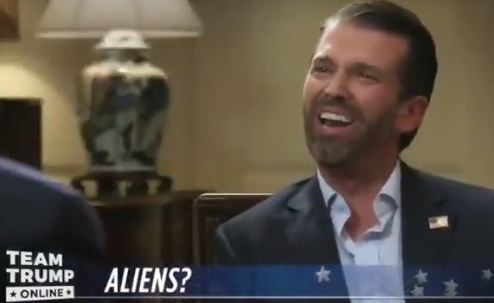 6月18日晚上的“父親節特別節目”裏,小特朗普採訪了自己的總統老爸。他們談到了關於外星人的一個“未解之謎”:1947年,美國新墨西哥州羅斯威爾市一名牧場主在他的牧羊場發現不明碎片,當時空軍官員稱墜毀的是一個氣象探測氣球。但是坊間一直流傳着這是UFO碎片的説法,羅斯威爾也成了UFO愛好者推崇的研究“聖地”之一。