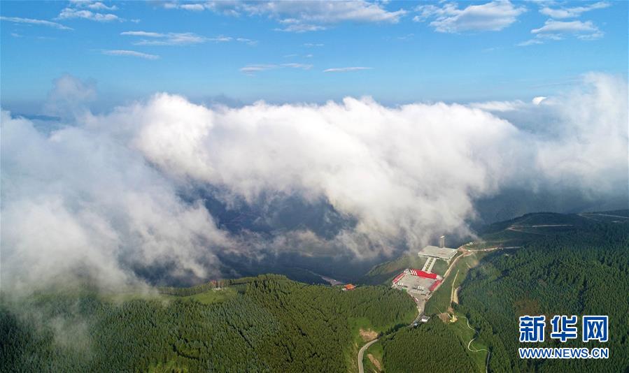 位於寧夏固原市隆德縣境內的六盤山紅軍長征紀念亭(無人機照片,2018年8月29日攝)。新華社記者 王鵬 攝