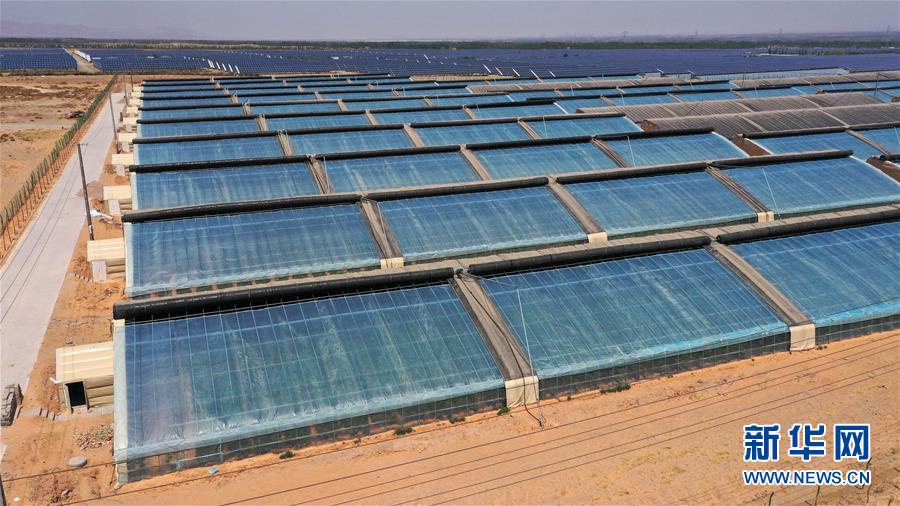 寧夏銀川市永寧縣閩寧鎮現代化蔬菜大棚(無人機照片,2020年5月2日攝)。新華社記者 王鵬 攝