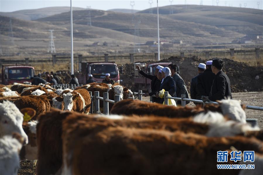 寧夏海原縣海城鎮農民在華潤基礎母牛培育基地挑選基礎母牛(2019年3月12日攝)。新華社記者 馮開華 攝