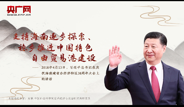 習近平:黨中央決定支持海南全島建設自由貿易試驗區,支持海南逐步探索、穩步推進中國特色自由貿易港建設,分步驟、分階段建立自由貿易港政策和制度體系。