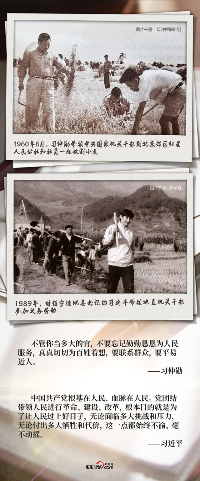 習仲勳心中始終裝着人民,終生踐行羣眾路線;習近平把人民放在心中最高位置,將更好滿足人民羣眾對美好生活的嚮往作為奮鬥的目標。