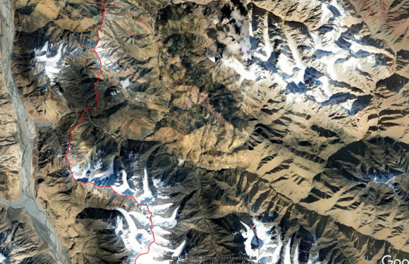 印度搞小動作,將實控線向我國這邊移動,圖為印度程序員修改的谷歌地球實控線