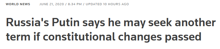 據瞭解,俄羅斯將於6月25日至7月1日在全國範圍內對憲法修正案進行投票,其中包括將允許普京在2024年任期屆滿時再尋求兩屆總統任期。目前,普京已經宣佈,俄羅斯將於7月1日舉行憲法修正案全民公投。