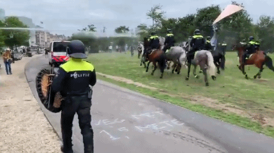 當地時間6月21日,因民眾不滿疫情封鎖政策,荷蘭海牙爆發大規模示威抗議活動。數千抗議者聚集在市中心馬利埃德區(Malieveld),要求政府“停止封鎖”,解除1.5米安全社交距離限制。