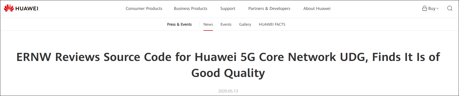 面對無端的抹黑,華為拿出的是“硬實力”。5月13日,華為發出公告證明其5G核心網絡UDG通過了德國老牌獨立互聯網信息安全服務提供商ERNW的源代碼審核,獲得“質量很高”的評價,“ERNW的研究報告是一項令人信服的證據,證明華為5G核心網絡安全可靠。”