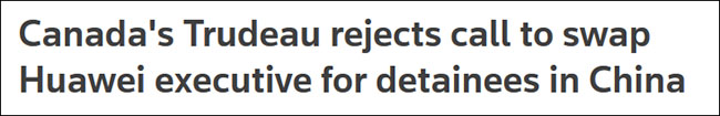 “我完全不同意他們的看法……我們不允許政治壓力或是對加拿大公民的逮捕就能影響司法系統。”特魯多煞有介事地説道,“所以我尊重他們,但他們是錯的。”