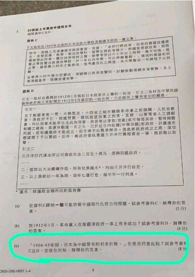 利用片面材料,佯裝中立,但傾向性極強的試題,圖片來源:港媒