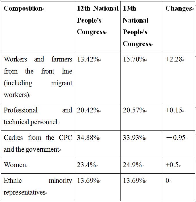 Comparison of the deputies to the 12th and 13th National People’s Congress