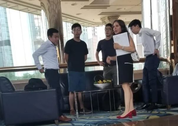 “港獨”組織“香港眾志”頭目黃之鋒等人被拍到與美國駐港澳總領事館政治組主管會面 圖自港媒