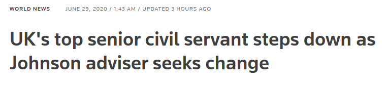 英國《衞報》28日援引該國公務員系統前負責人克斯拉克(Kerslake)爵士的話表示,塞德威爾是在不公正、敵對的情況通報(unfair hostile briefings)之後宣佈離職的,而該通報試圖將新冠肺炎疫情(防治不力)的錯誤歸咎於公務員。