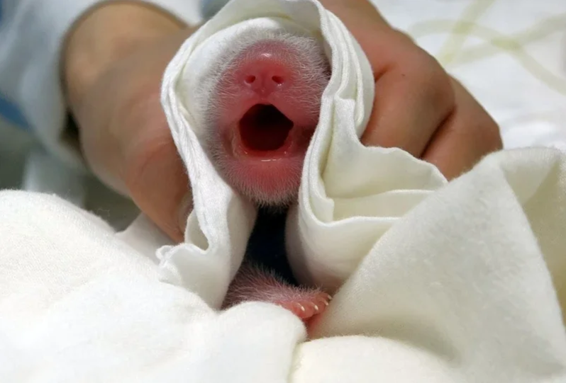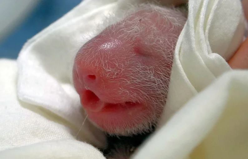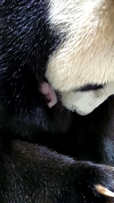 剛出生的熊貓寶寶叫聲十分洪亮。一聽到寶寶的哭聲,“圓圓”變叼起幼崽並將其抱入懷中,這份精心呵護令保育員最初並不清楚熊貓寶寶的性別。