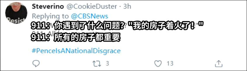 現在,彭斯也成為網友的爭論焦點。一些人認為彭斯説的話並沒有錯,但也有一些網友認為,當前美國社會中的種族主義問題十分突出,就像是一個“着了火的房子”。一位網友稱,這就像當你的房子着火了,打電話給911救助時,等來的回應卻是“所有的房子都重要”。