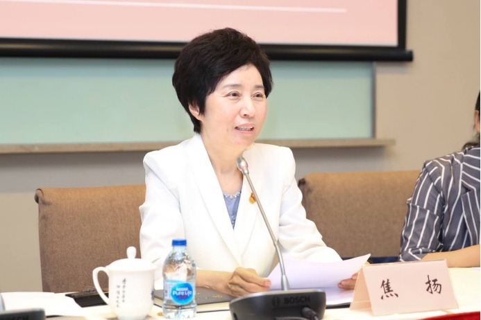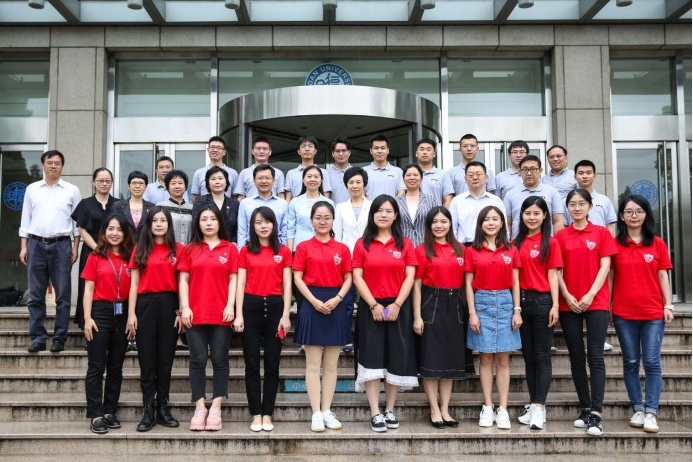 復旦大學黨委書記焦揚在與志願服務隊員們座談