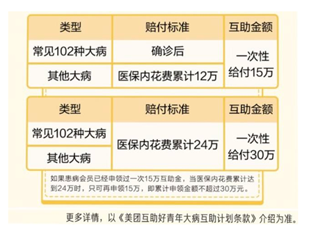 6月28日,美團互助上線一週年之際,在常規102種疾病保障基礎上, “以醫保內花費”為參考標準,全面覆蓋所有疾病治療,成為首個“不限病種”的大病互助計劃。