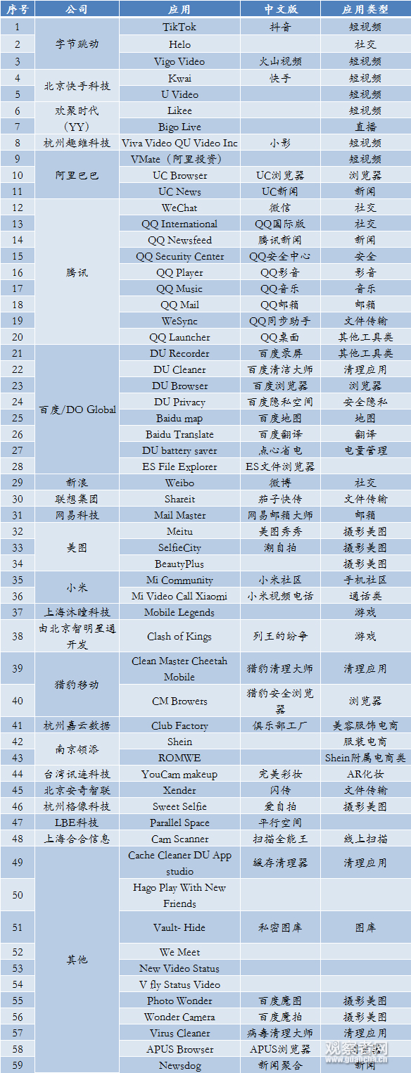 印度封禁的這些應用中,出現多個騰訊系、百度系、短視頻巨頭系(抖音、快手)、阿里系、美圖系、小米系等企業旗下的應用,還包括Weibo(新浪微博)、Shareit(茄子快傳)、CM Browers(獵豹安全瀏覽器)等熱門應用。