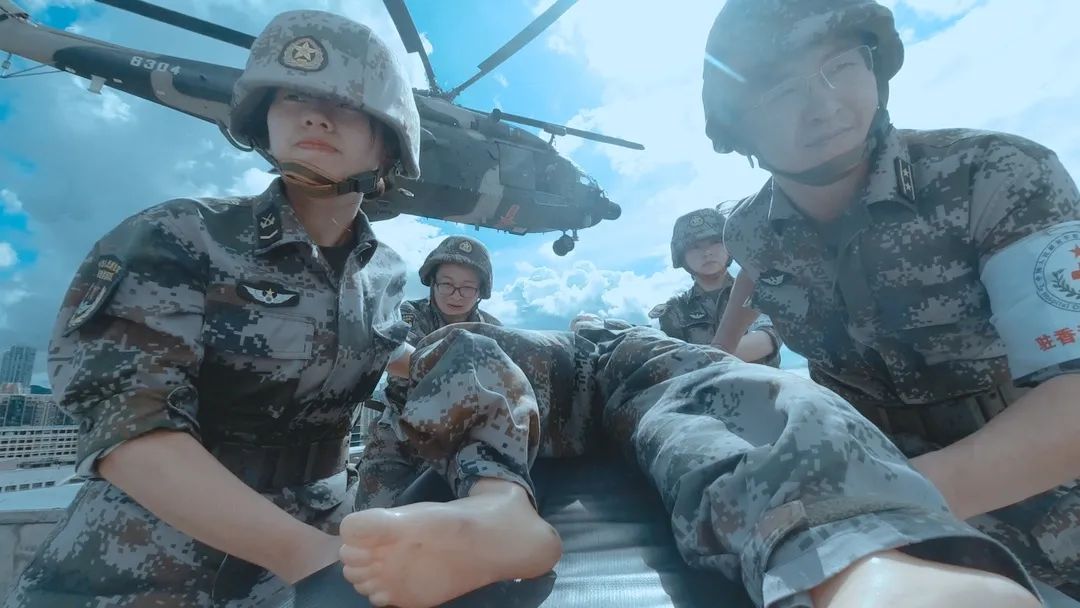 上午9時30分,海上聯合指揮所指揮對香港海域的模擬失事人員進行救援,半小時後失事人員搶救成功。而與此同時,空軍直升機正在相隔數十公里外的任務區域完成傷員轉運任務,十幾分鐘左右時間,傷員被送至駐香港部隊醫院救護。