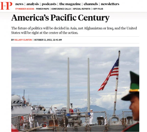 2011年《外交政策》刊登希拉里•克林頓文章《美國的太平洋世紀》