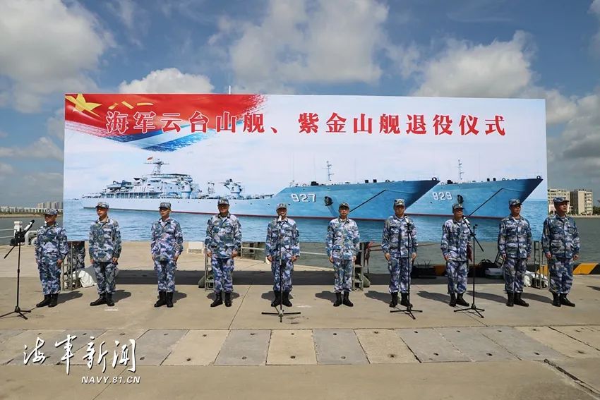 海風拂面,碧波盪漾。7月7日,海軍雲台山艦、紫金山艦正式退出人民海軍序列,南部戰區海軍某作戰支援艦支隊在湛江某軍港舉行隆重退役儀式,在莊嚴雄壯的軍歌聲中,雲台山艦和紫金山艦軍旗緩緩下降,標誌着海軍兩艘國產第一代具有遠洋意義的坦克登陸艦退出現役。