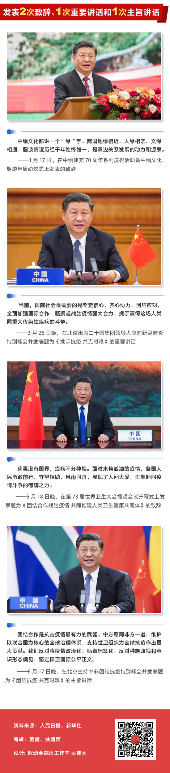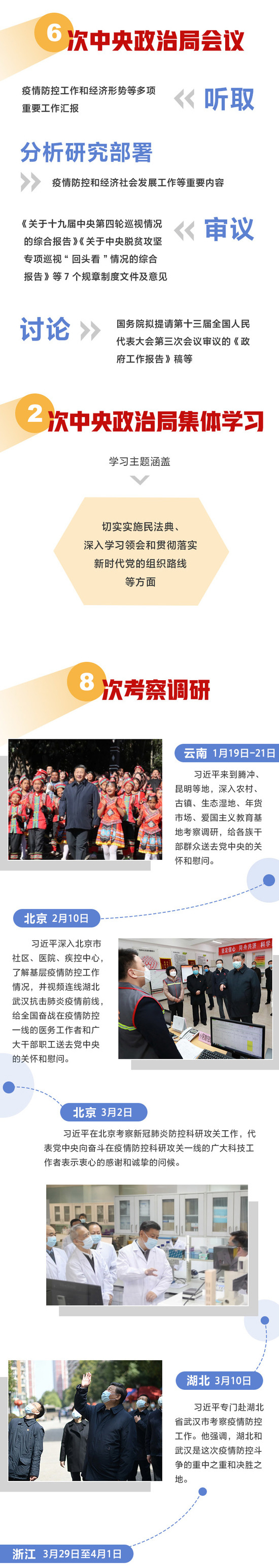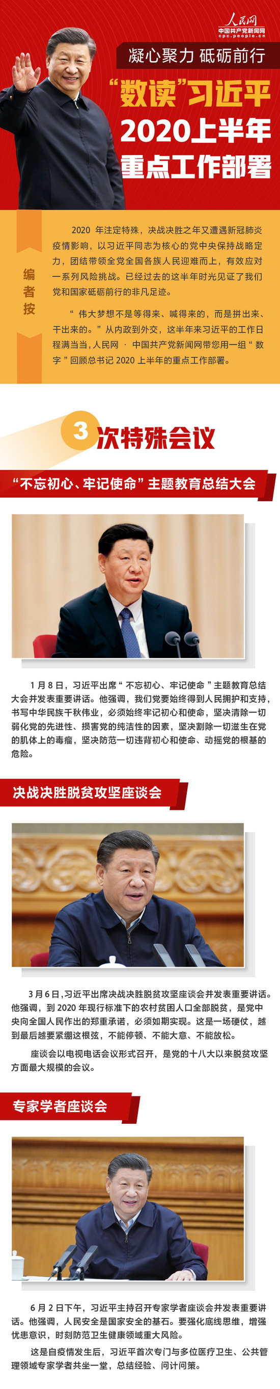 細數今年上半年,習近平夙夜在公,勤勉工作,不斷刷新“忙碌指數”:數十次出席重要會議部署各項工作,8次國內考察,調研足跡遍及7省區市,3次出席國際重要會議並發表講話,20餘次致信、回信海內外人士,60次就疫情防控等話題與40餘位外國政要和國際組織負責人通電話……人民網·中國共產黨新聞網推出系列圖解報道,帶您全方面回顧習近平的2020上半年。