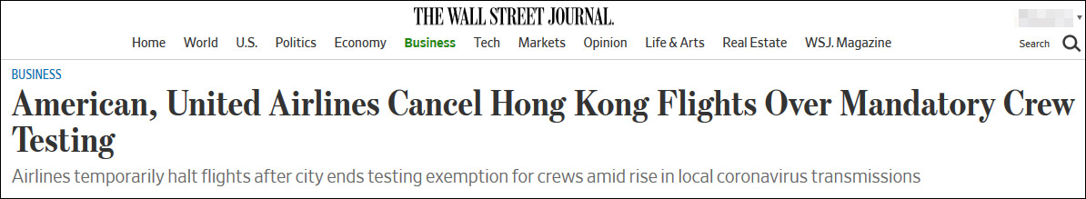 就在此時,因為檢測規定的變化,有兩家美國的航空公司突然取消了飛往香港的航班。