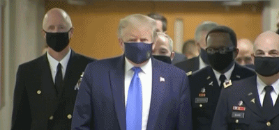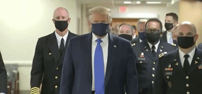 特朗普終於公開戴口罩了