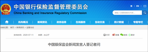 據中國銀保監會網站7月11日消息,中國銀保監會新聞發言人就當前銀行業保險業運行情況等問題答記者問。