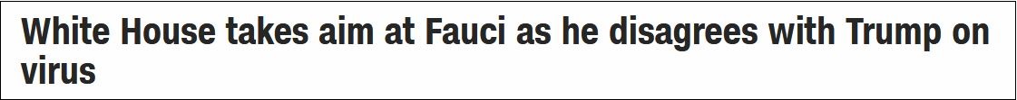 同天,福奇在接受英國《金融時報》時透露稱,自己從6月2日開始,就再也沒親自與特朗普見面,並且他已經有至少兩個月沒有向特朗普做過簡報了。“你可能知道,我向來有此美名:從來都説真話,也不會粉飾什麼事。而這可能就是為什麼我最近不常上電視的原因。”
